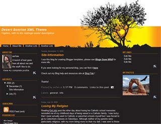 This is a two column XML layout designed for use with the newest version of Blogger. It?s a fixed width and will fit perfectly on an 800×600 screen size and also works on wider screens as well. It has a permanent RSS Feed link in the heading.