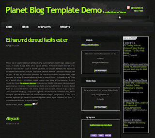 Try to use this template, it comes with Quotes section to show you a dynamic random quote (just like Planet Blog Template's quote) and Page Peel on the top left corner.