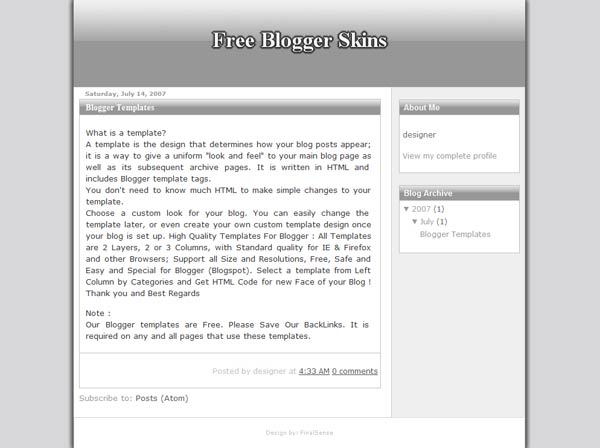 Download free XML blogger, blogspot templates,skins,design and layouts absolutely FREE!. It's easy & simple to download. XML blogger templates give your blog a professional and distinctive look.They are absolute free & user friendly.